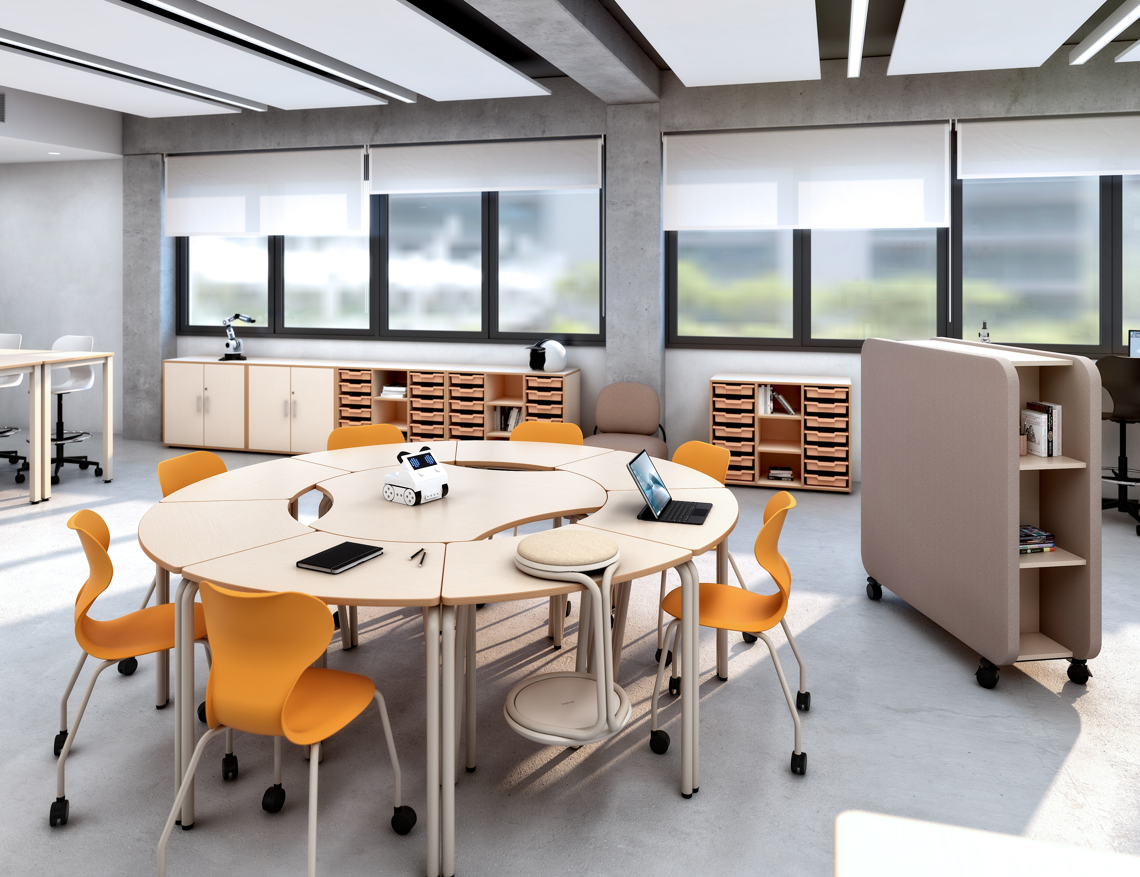 Freiformtisch für individuelle Lehrkonzepte. Mit mehreren Tischen kombinierbar.