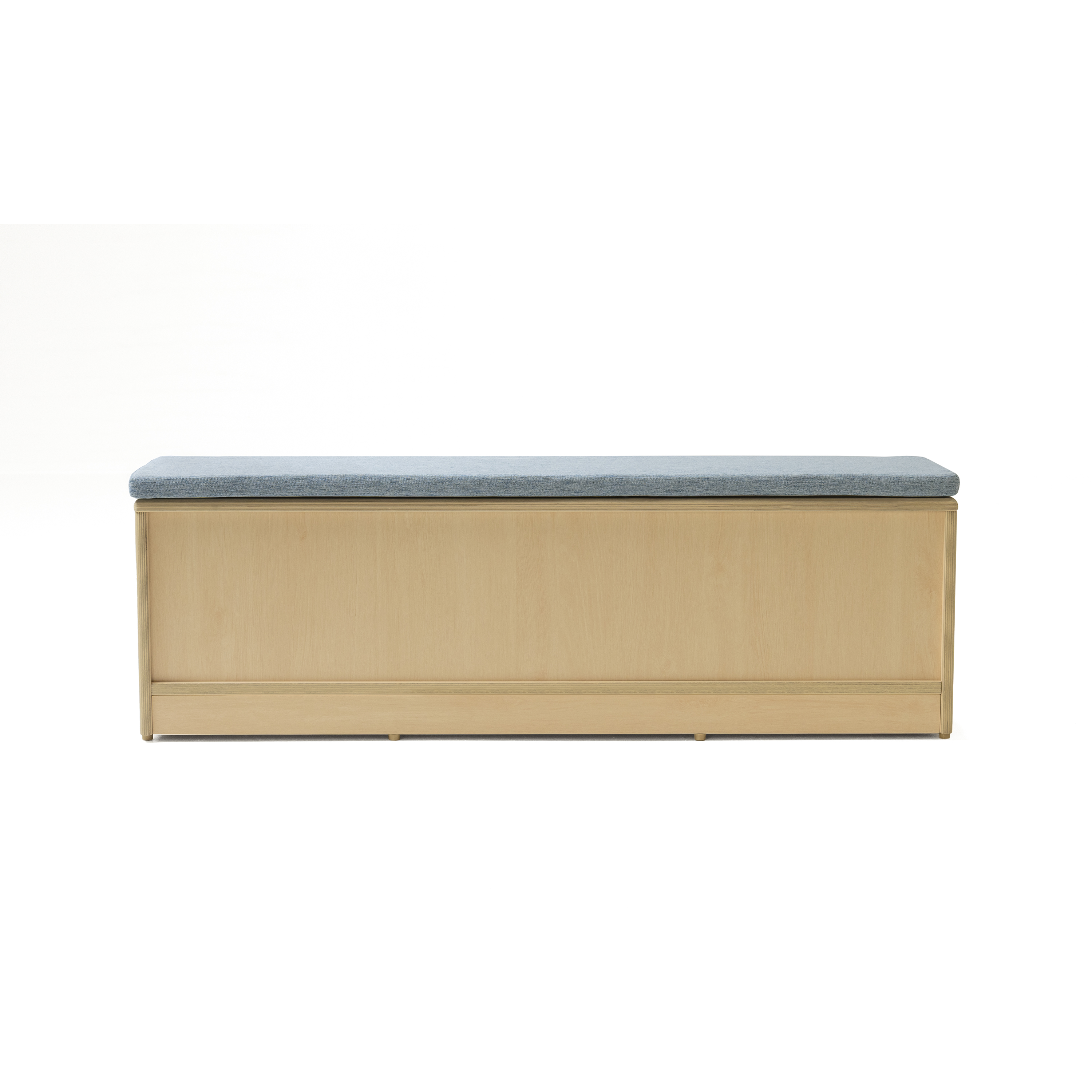Kinderbank mit Aufbewahrungsregalen, gefertigt aus Birken-Sperrholz.