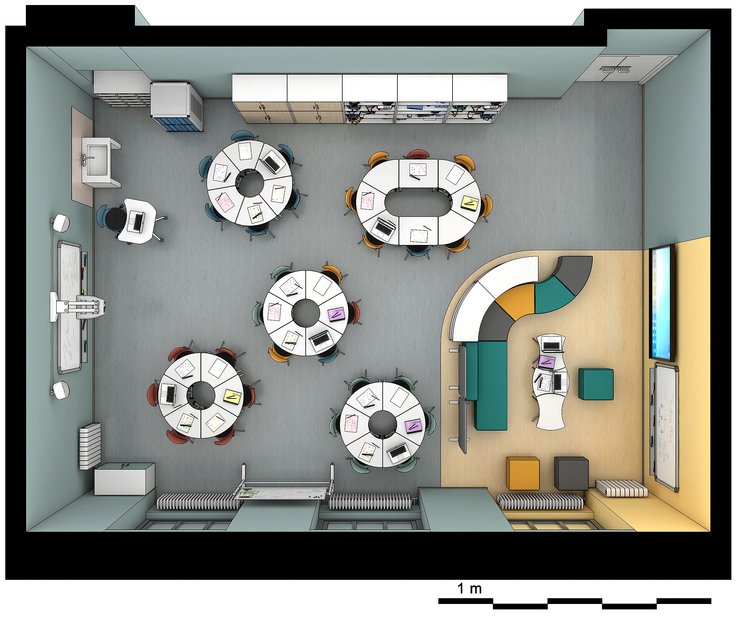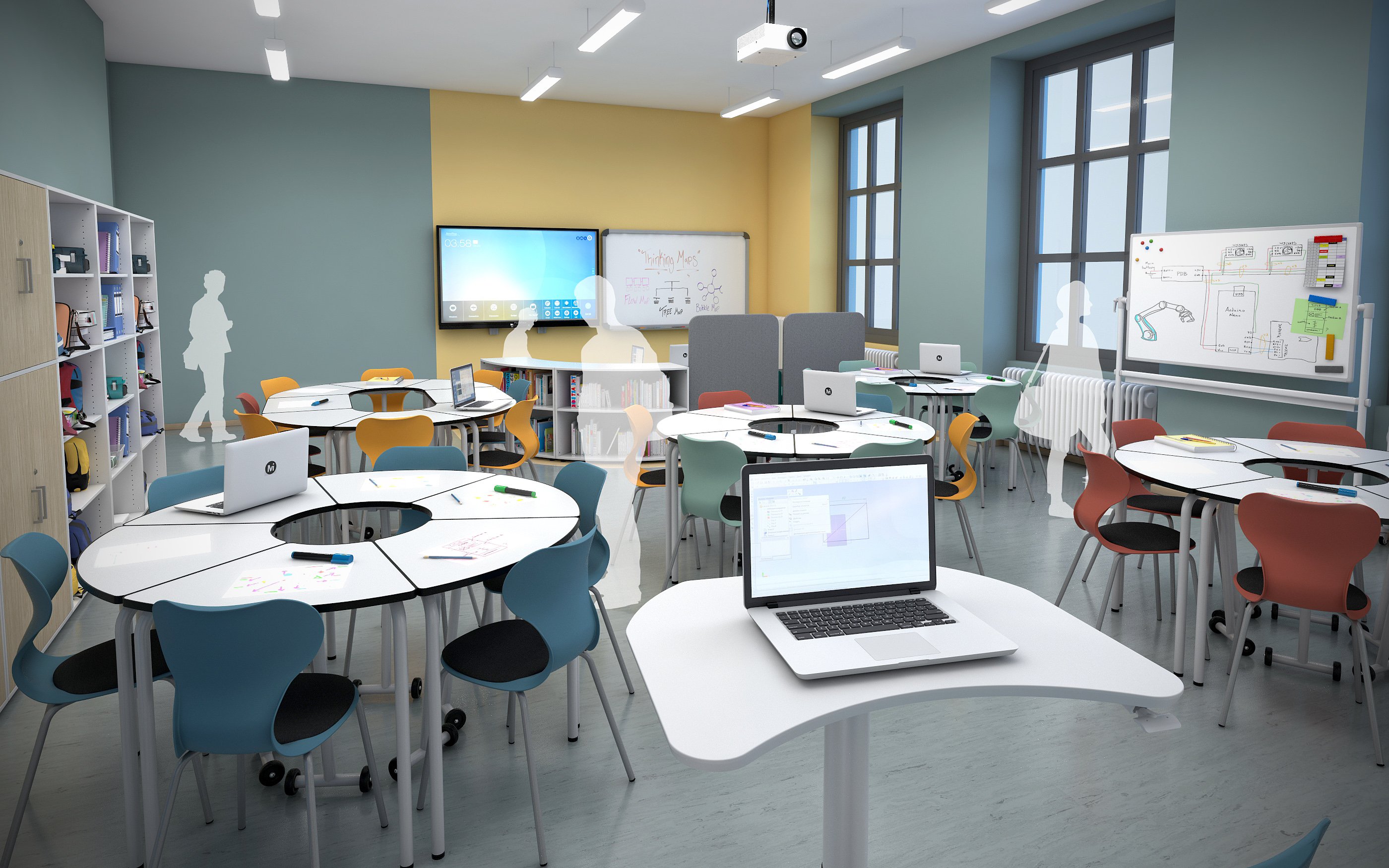Hochschrank aus Holz mit abschließbaren Flügeltüren – ideal für Klassenzimmer