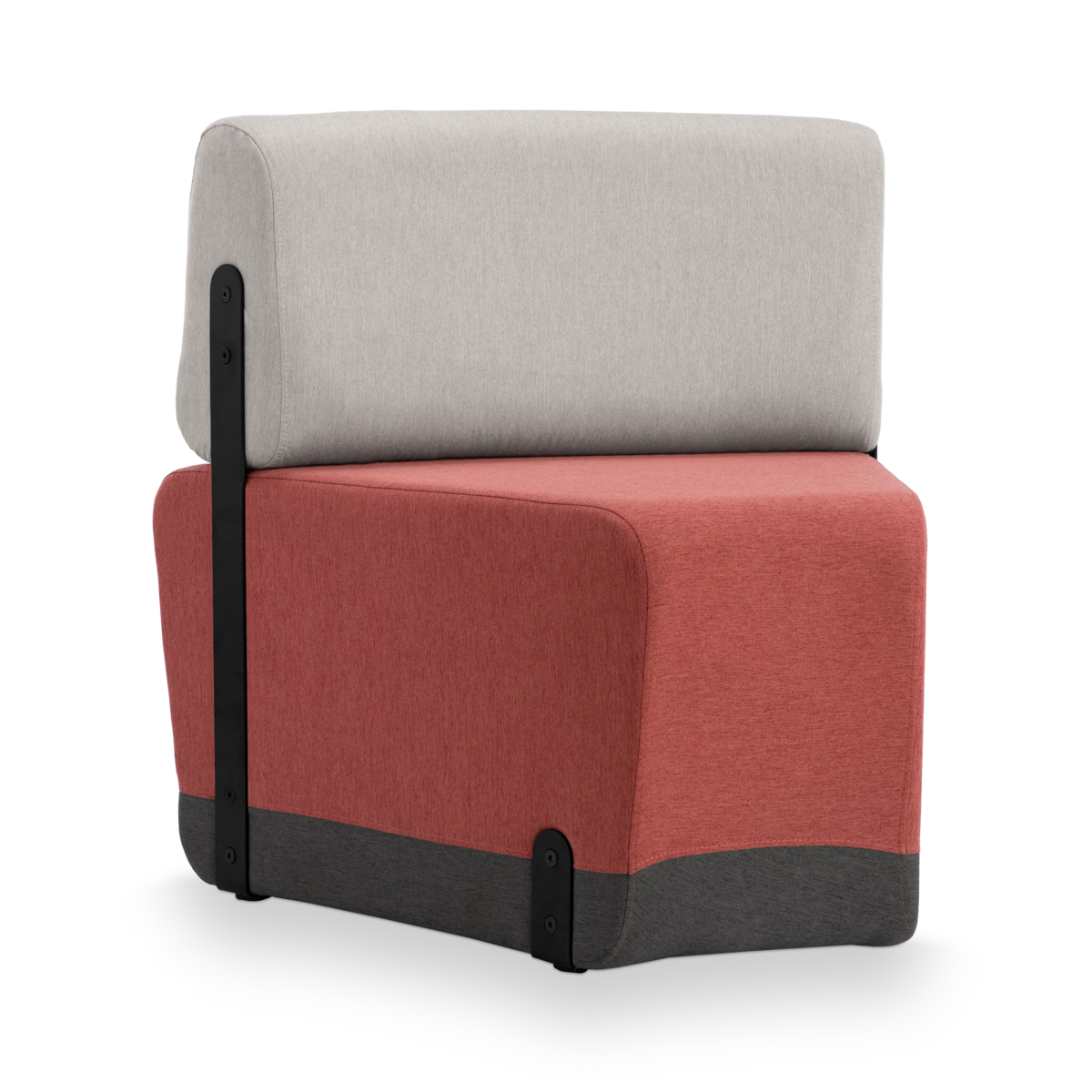 Modulares, gebogenes Schulsofa ohne Rückenlehne, entworfen zur Schaffung von Ruhe- und Begegnungszonen in Bildungseinrichtungen.